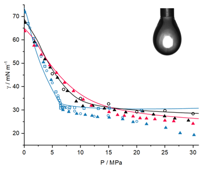 In the context of the energy transition, processes related to storage and utilization of CO2 and H2 as well as fluid mixtures containing natural gas are gaining relevance. These processes take place at elevated pressure for which determining the respective phase equilibria as well as system properties like the interfacial tension and mass transfer is challenging. Experimental and theoretical investigations are carried out using the model systems “water – n-dodecane – n-butanol – CH4” as well as “water – n-dodecane – n-butanol – CO2”, representing systems that are of high scientific interest since from literature it is known that two of the transferring compounds, n-butanol and CO2, are enriched at the interface. For the first time, two quaternary systems are investigated systematically in this project, i.e. all relevant thermodynamic properties are determined, also of all binary and ternary subsystems. Further, new experimental procedures are employed to systematically investigate the mass transfer that include the implementation of results from the thermodynamic modelling that on its turn is delivering a thermodynamically consistent approach based on PCP-SAFT. In combination with the density gradient theory (DGT), interfacial properties can be calculated. The final objective of this project is to develop a thermodynamically consistent model for determining the mass transfer in multiphase systems at elevated pressures. Further, the data base on fluid mixture properties is extended and new experimental methods are provided.