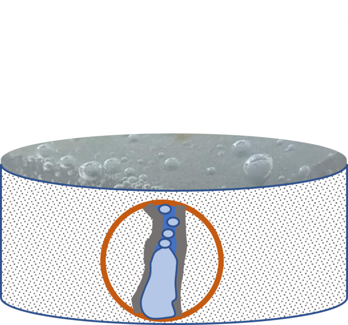 Objective of this project is to quantify the risks of storing hydrogen in underground storage facilities by better understanding the involved physical and chemical mechanisms and transport properties in porous systems. By means of laboratory tests, the effect of compressed hydrogen interacting with reservoir water inside the pores of the completion cement is experimentally studied, quantifying the relevant parameters in water-saturated cements under real reservoir conditions. Hydrogen diffuses rapidly in various materials, being partially stored in the microstructures, leading to changes that e.g. are known as hydrogen embrittlement in case of metals. Less is known about the behavior of hydrogen in cement, especially in the presence of formation water. Under reservoir conditions a fluid phase boundary develops, resulting in the formation of a capillary pressure, which in fine-pored systems can have high magnitudes which may contribute to the tightness of the system. The resulting capillary pressures are confirmed by determining the interfacial tension between the fluids and the contact angle formed in the pores under realistic operating conditions by the pendant and sessile drop measurement. The findings on the governing mechanisms along with data on the diffusivity of hydrogen inside the pores that are filled with formation water are used to estimate the loss of hydrogen by help of empirical correlations and numerical simulations.