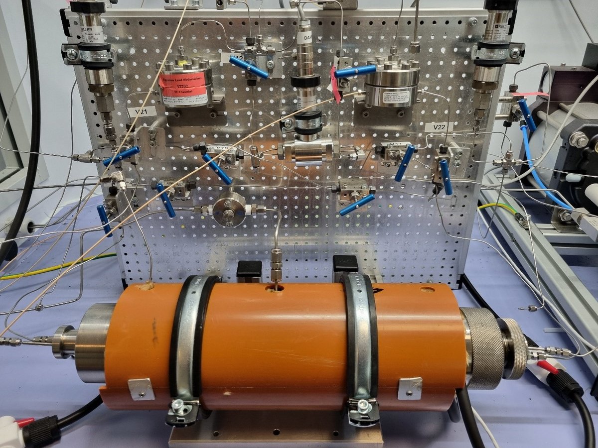 Unser Versuchsaufbau ermöglicht präzise Messungen bei Temperaturen bis zu 120 °C und Drücken bis zu 300 bar und ist damit hervorragend geeignet zur Simulation geologischer Tiefenverhältnisse.